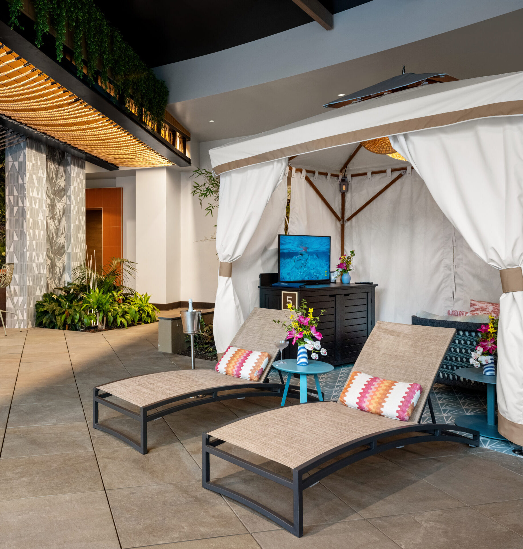 Cabana rentals are available daily and accommodate up to 8 guests.